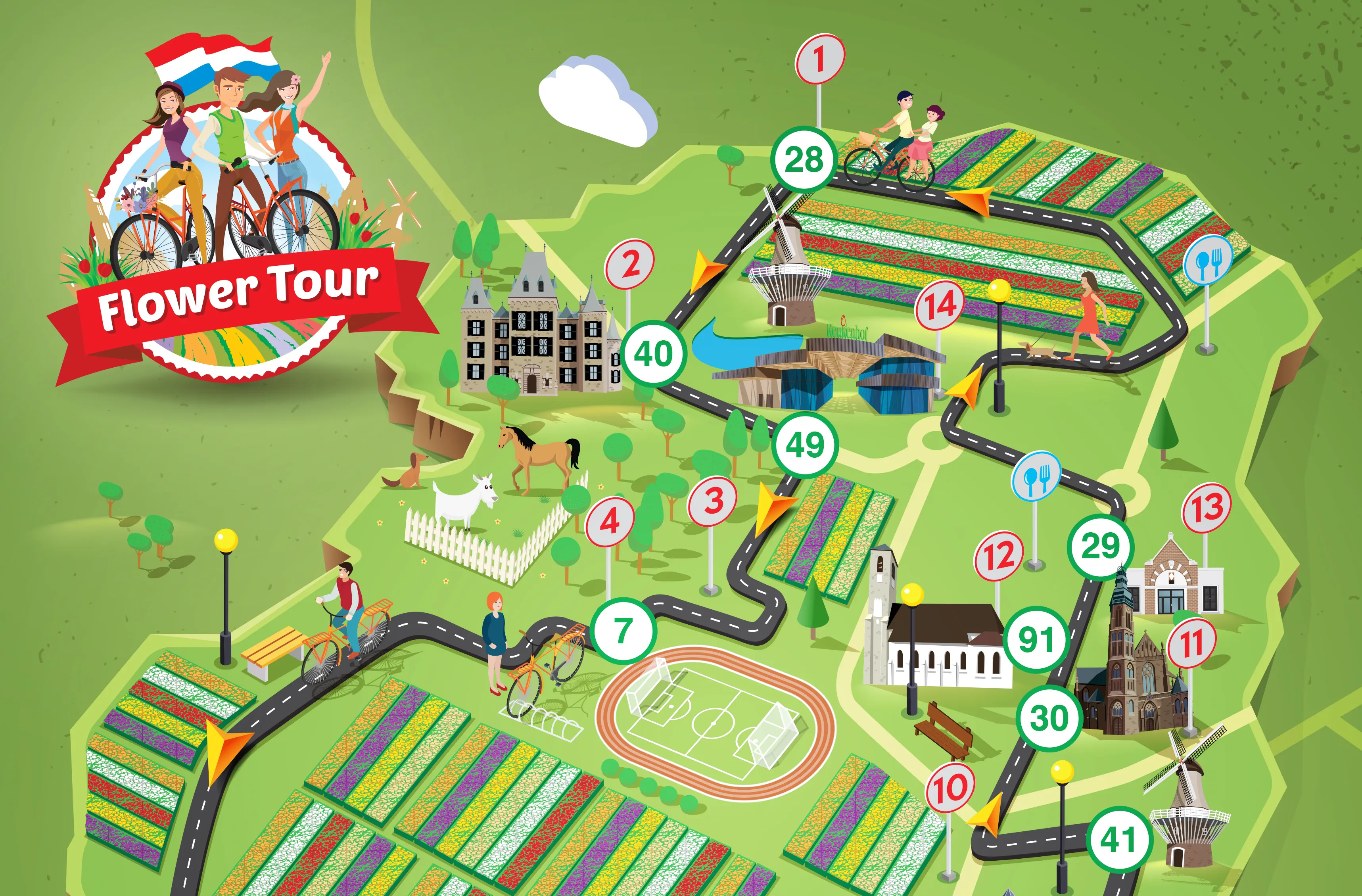 Interactive tulip museum and fields in one stop.